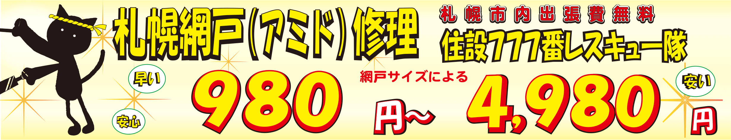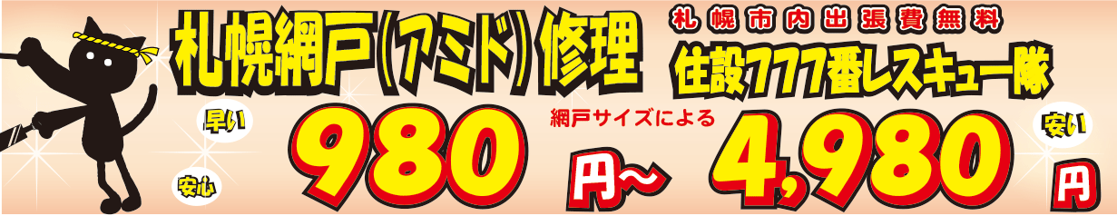 札幌市内での網戸の修理【980円~4,980円】にて出張網戸修理サービス承り中。札幌市内出張料金無料。