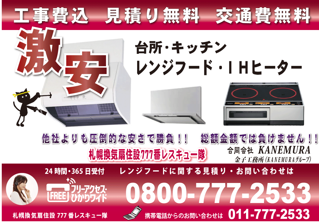 【札幌換気扇住設777番】までご連絡を!