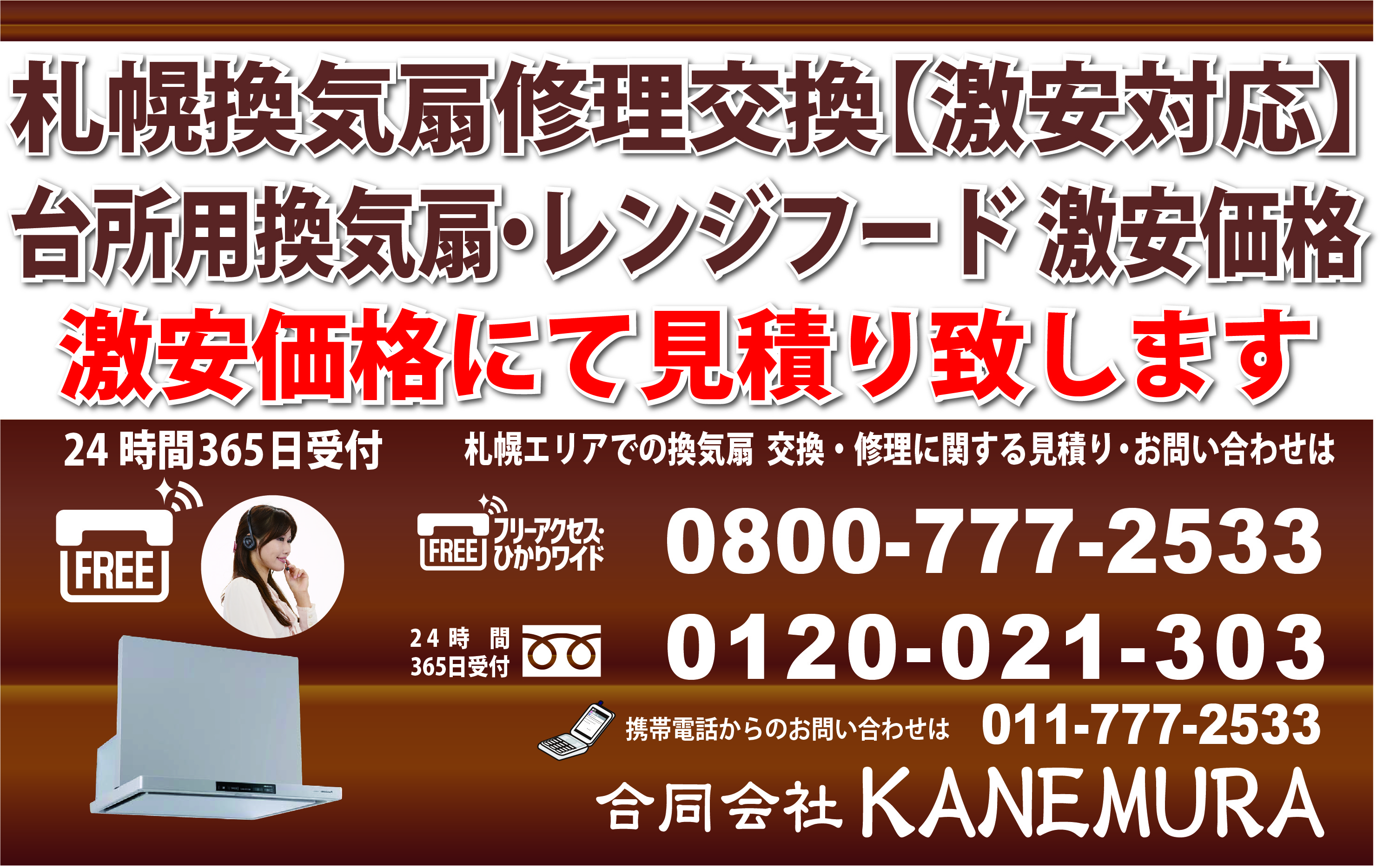 札幌台所・キッチン・レンジフード 修理・交換の作業費用 最安値価格にて提供中!・・・住設777レスキュー
